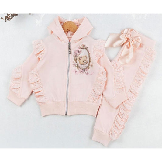 Girl's Tracksuit With Frill Trim & Teddy Motif- Various Colours- Ages 1 to 8 Years
