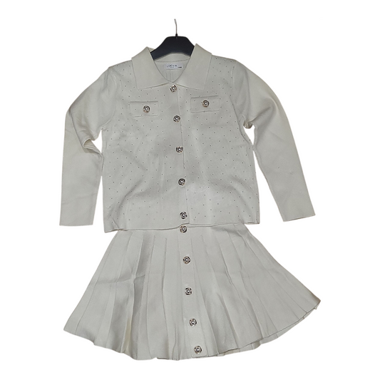 Girl's Cardigan & Skirt Set- Black or Ivory White- Ages 4 to 14