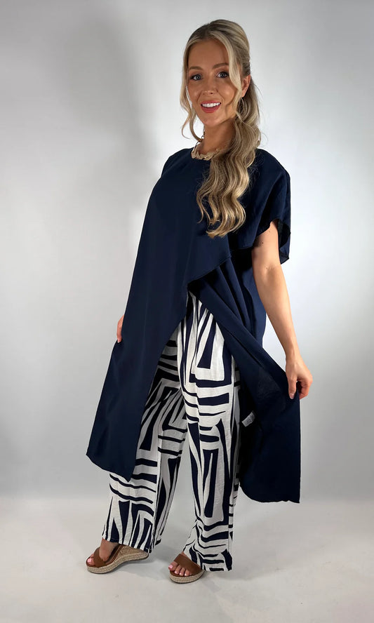Women's Longline Abstract Cross Over Co-ord Size 8 to 18
