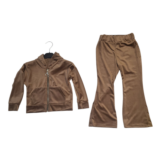 Girls Juicy Hooded Zipped Jacket & Wide Bottom Trousers Lounge Wear Set- Brown- Ages 4 to 14 Years