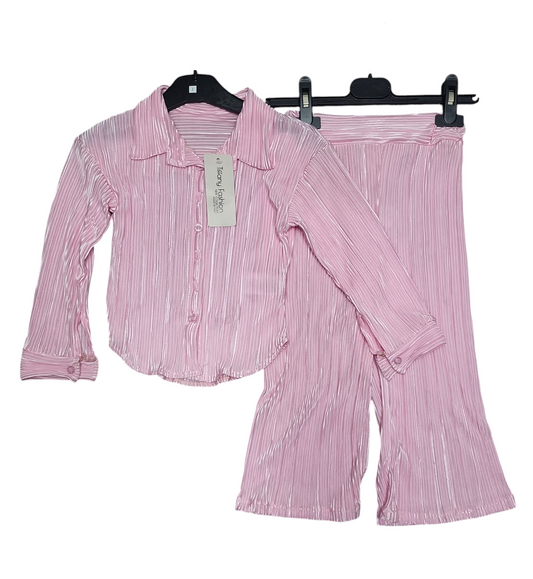 Girls Wide Bottom Trouser Suit- Pink/Sky Blue
