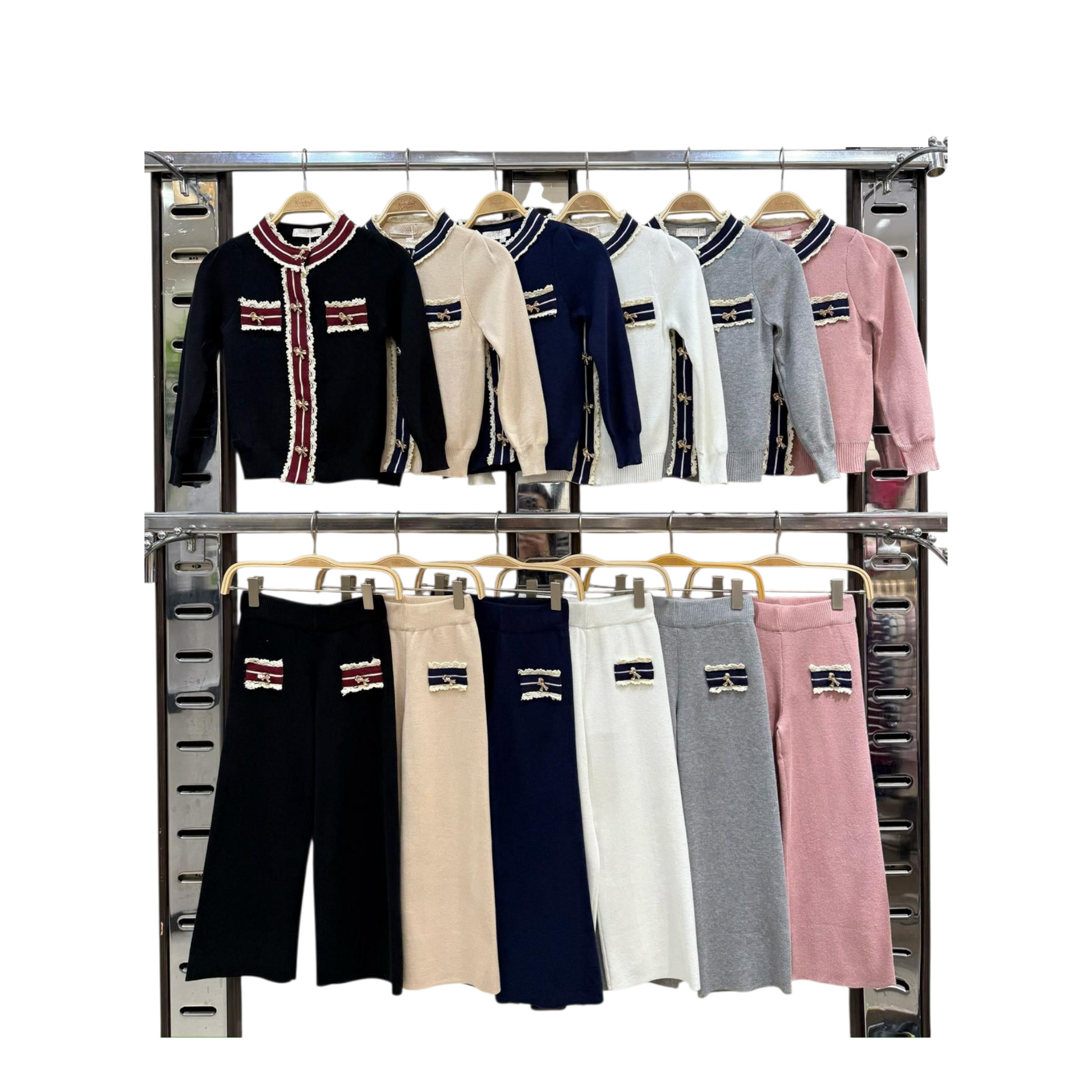 Elevate your little girl's wardrobe with our Girl's Lounge Suit featuring exquisite diamante bow detailing and stylish wide bottom trousers. Available in chic black or grey, this ensemble offers both comfort and flair, making it perfect for ages 4 to 14. Crafted by Charlie's Fashions under the Kids Star label, it's ideal for lounging or playdates. Choose this stylish outfit for a blend of fashion and fun that she'll love!